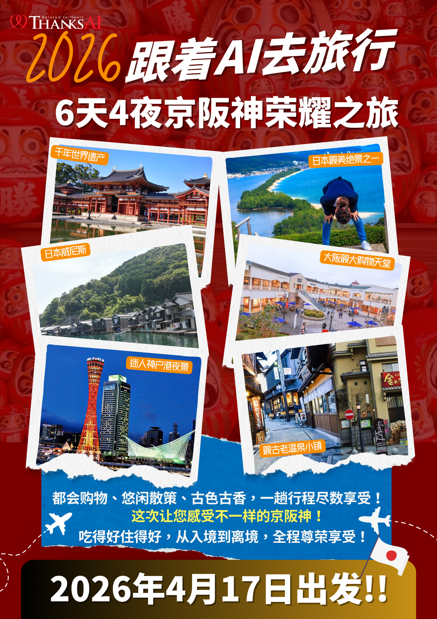 我们隆重宣布,2026日本奖励旅游已正式确定,将于 2026年4月17日至22日启程 ,畅游充满魅力的神户、大阪与京都 !![]()