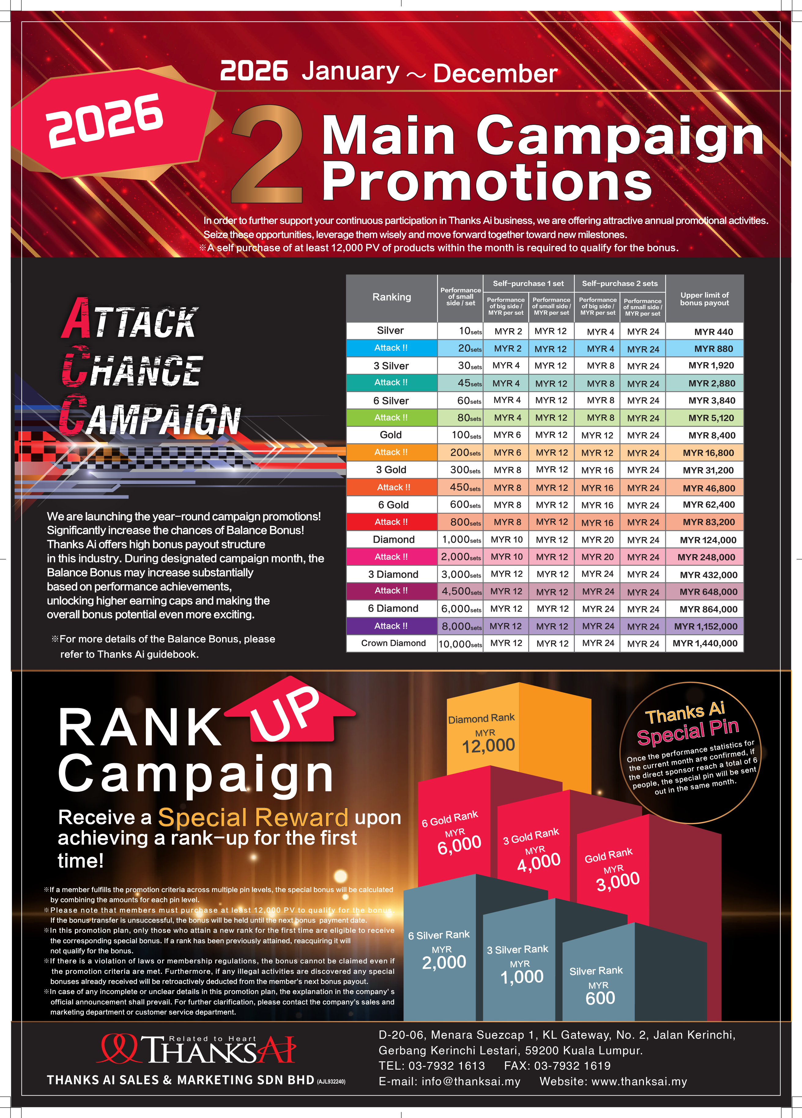Thanks Ai Malaysia dengan bangganya melancarkan 2 KEMPEN UTAMA SEPANJANG TAHUN bagi membantu ahli dan pemimpin merancang dengan lebih jelas, berkembang dengan lebih pantas, dan mencapai sasaran lebih tinggi! 🚀